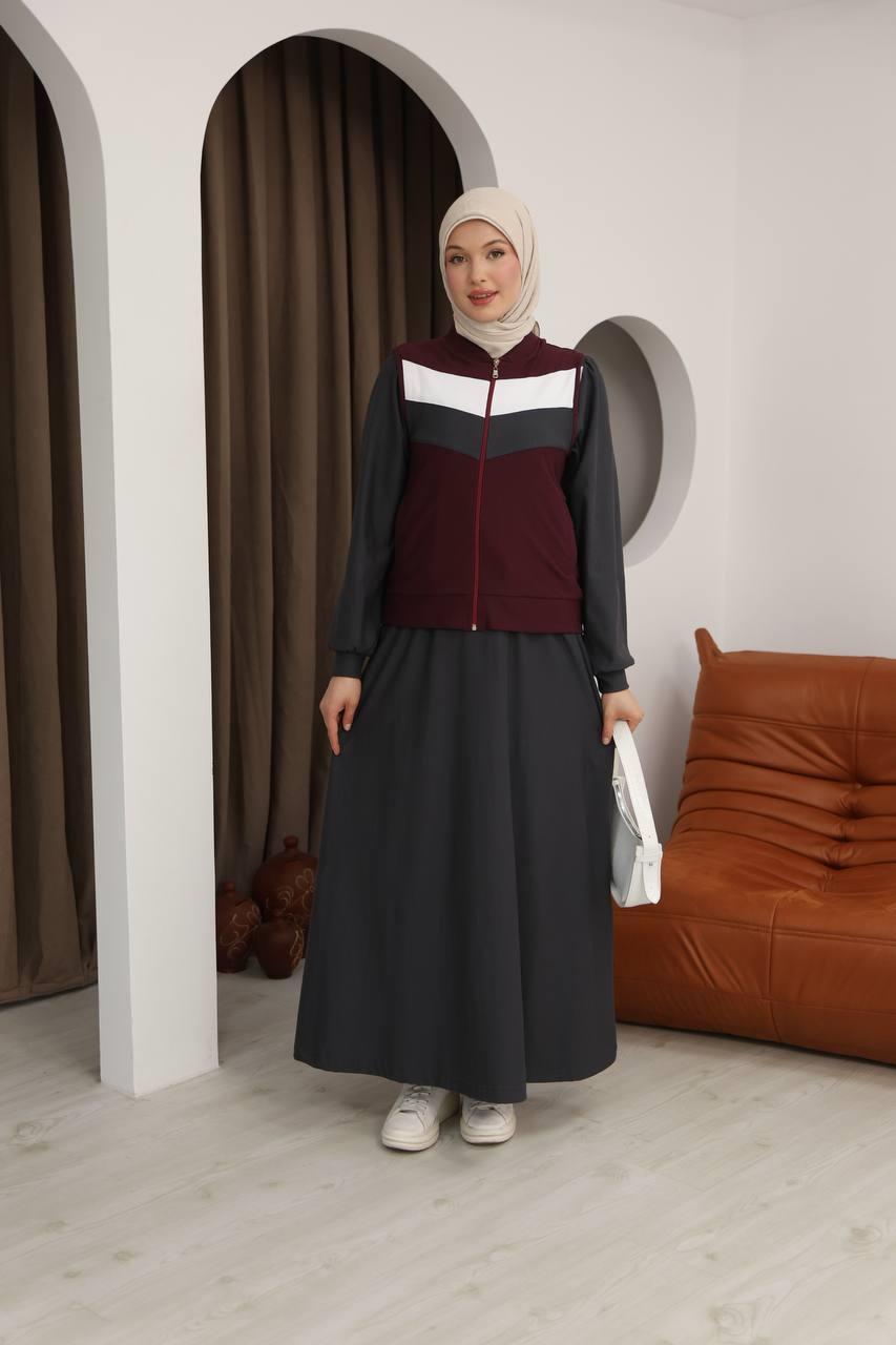 7058 İki İplik Spor Takımı - Gri & Bordo