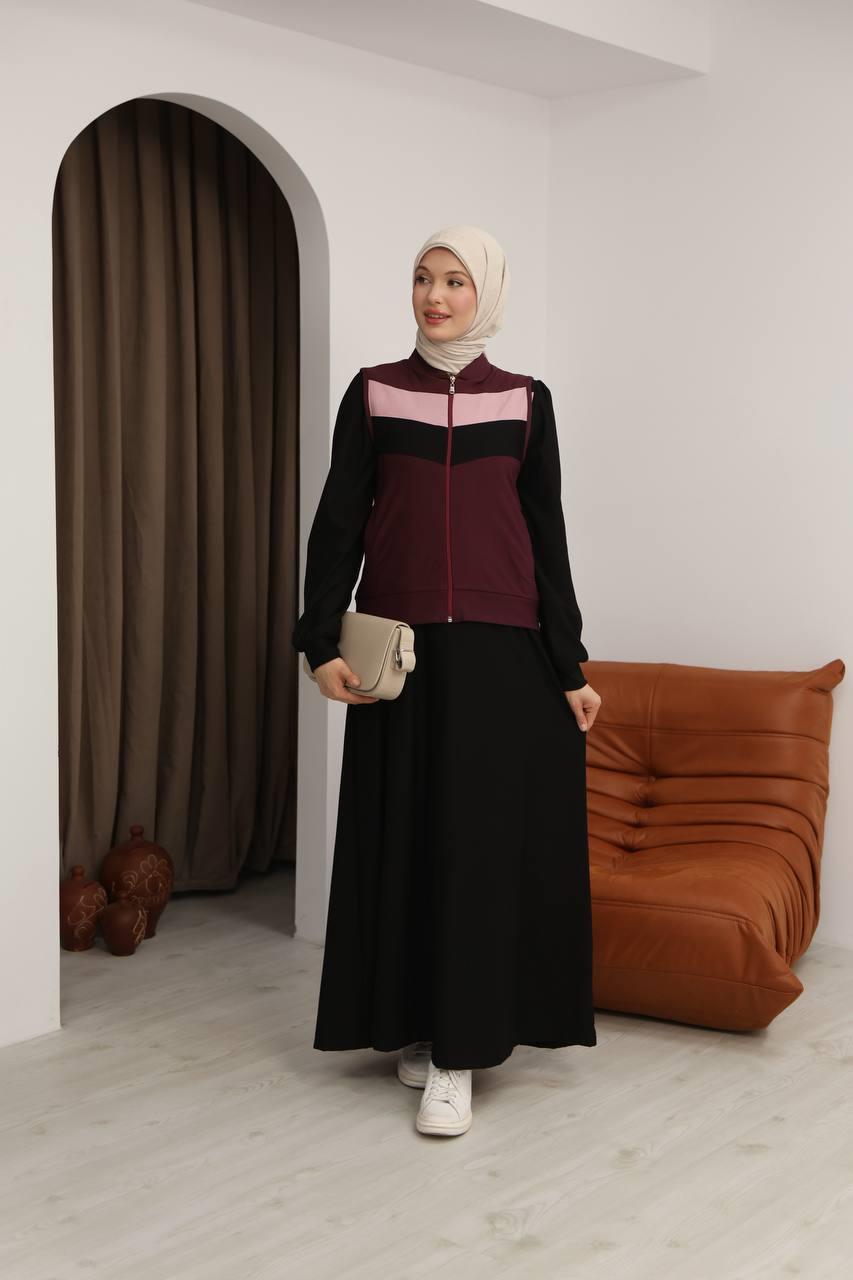 7058 İki İplik Spor Takımı - Siyah & Bordo