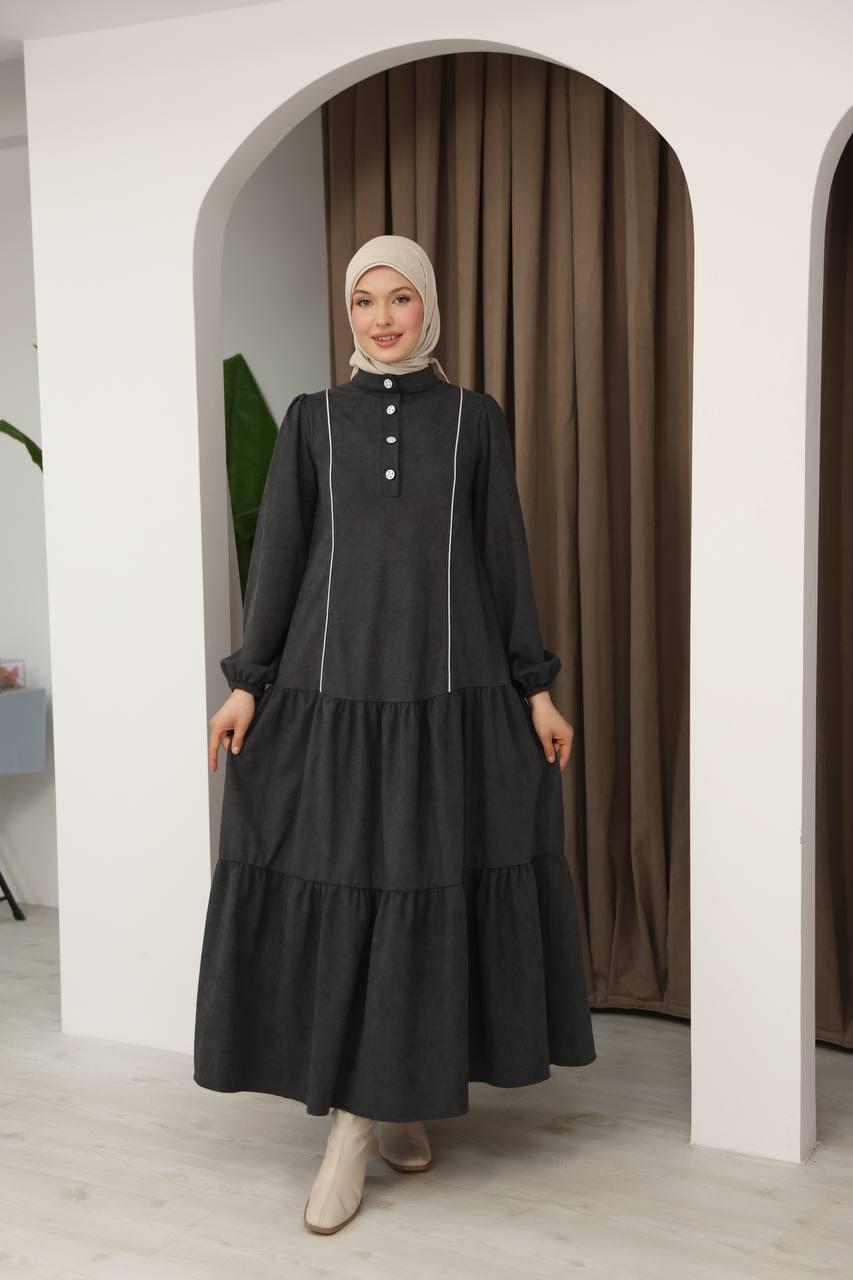 7073 Belsiz kışlık Elbise - Koyu Gri