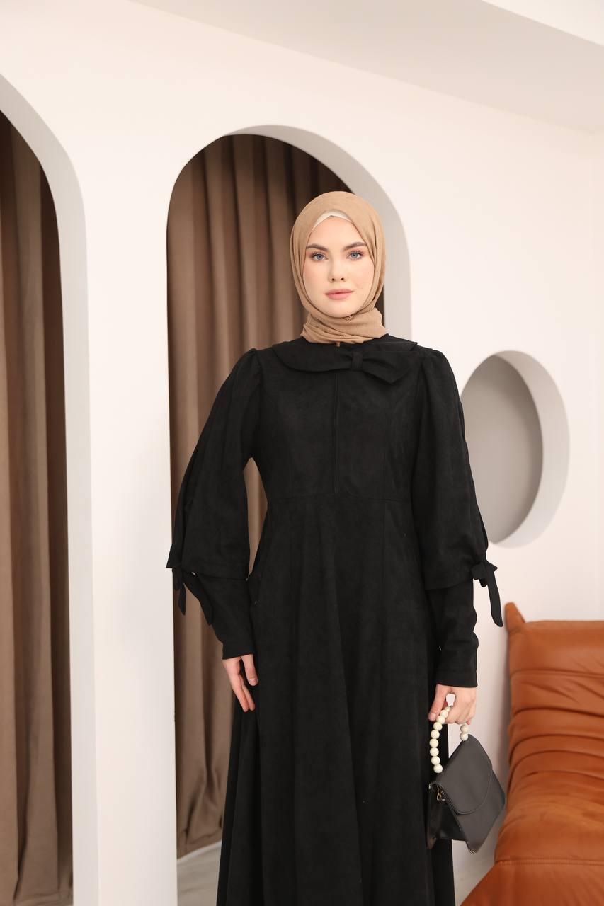 Kumaş: Star Süet.Bu zarif elbise, ön kısmında yer alan kullanışlı fermuar detayıyla modern bir görünüm sunar.